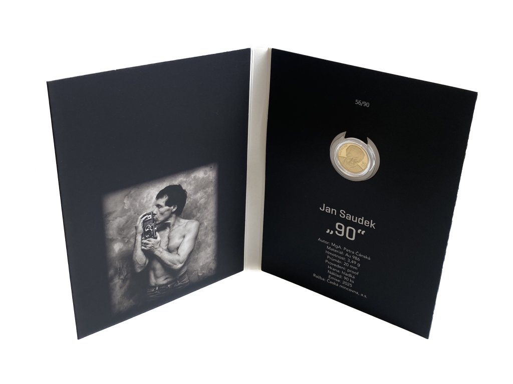 Janu Saudkovi vzdává hold další zlatá medaile České mincovny. Pamětní ražba vychází u příležitosti fotografových devadesátin.