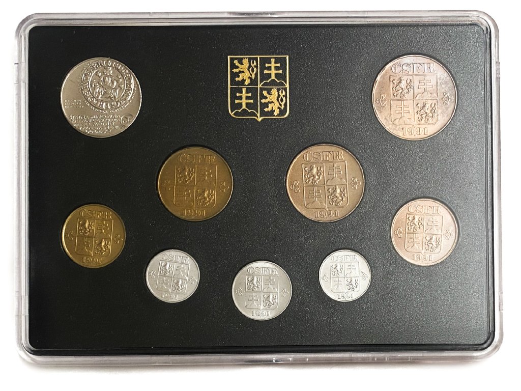 nominální hodnoty: 1 Haléř – 5 Kčs + pamětní medaile Kremnica